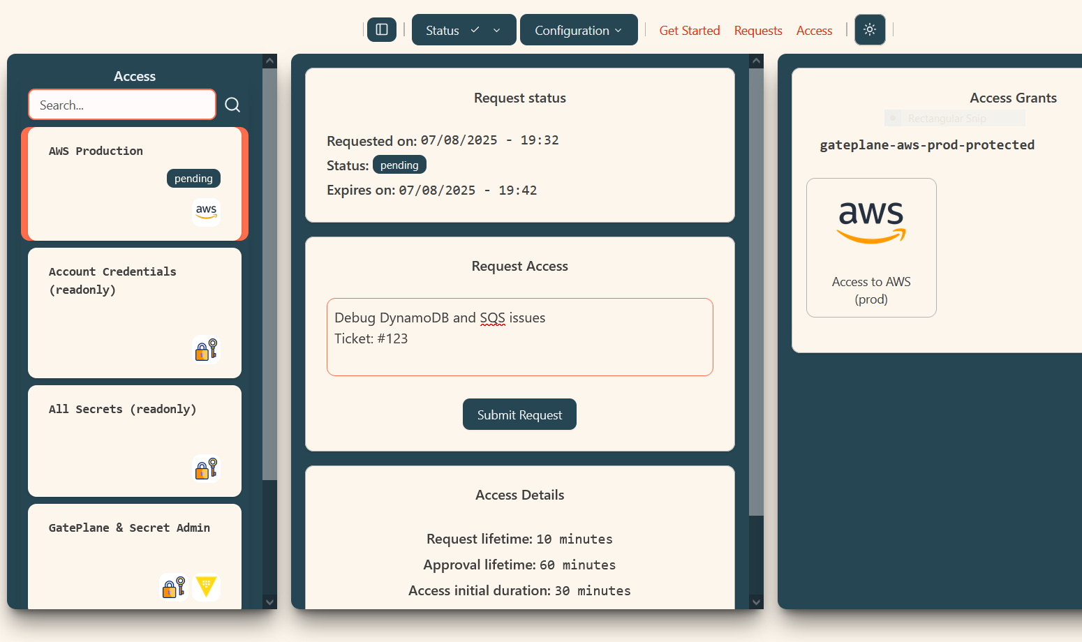 GatePlane integrates natively with existing secrets engines — AWS, Kubernetes, SSH, databases, and more — as well as existing Okta Integrations — adding conditional, auditable, and approval-based access workflows on top of your trusted foundation.