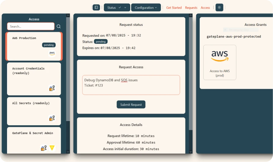 Request access in seconds. Get credentials that expire automatically. Less waiting, fewer tickets.